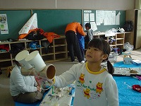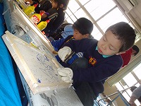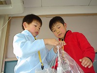 今回は、自分の作ってみたいと思った昔のおもちゃを最初から最後まで自分で作ってみました。自分のおもちゃだからこそ、作っている間は、本当に出来るかどうかどきどき、それを使ってあそんでいる自分を想像して、わくわく!みんなの顔は、真剣で、そして時々、笑みが浮かんでいました。おもちゃが出来上がると、もちろん、すぐにあそんでみます。缶ぽっくりにのって、始めの一歩を踏み出したとき、パチンコの玉を上手く飛ばせたとき、パラシュートがふわっと広がって、空から落ちてきたとき、子ども達は、瞬間その様子を固唾を飲んでうかがい、次の瞬間「できた!できた!わぁーいわぁーい」と飛び跳ねておりました。自分で最初からさいごまでやったからこそ、嬉しさも、満足感も大きかったのだと思います。さぁ、次回は雪だるまの達人!どれだけ大きな雪だるまを作れるか!楽しみにしていてね(あまゾン) | |
