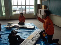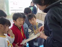 さぁ!どこまでとぶか!? | ひとつめを作り、だいぶあそんだので、むかしのおもちゃパート2の始まりです。さぁ、次はなにをつくる? | こちらは、けんだま。みんながやってみたいとおもえるように、スタッフも真剣にプレゼンしてます。 |