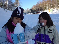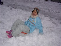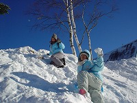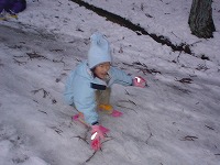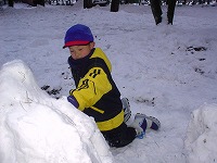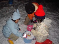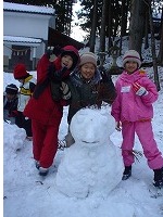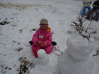 | ためしに何度もすべってみます。 | こちらは、 かまくら作り。コツコツ、夢中でやってみました。 | 大きな雪だるま。目、鼻、ボタンまで作って、大満足! | ||||||||||