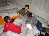 | ミーティングの後は、部屋でゆっくり。遊び疲れたのか、男の子の部屋は、あっというまに真っ暗でした。 | ||||||||||||