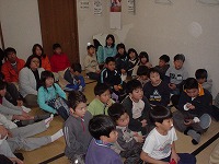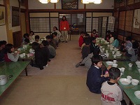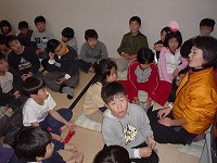 | よくあそんだあとは、お腹がペコペコ。みんなで、夕食です。 | 夕食の後は、恒例の『ガキ大将ミーティング』。おもしろかった事、困ったことなどの情報交換の場です。 | おもしろかった事、困ったことを聞いたり、話したりしながら、自分が明日何をしたいか想像をしていきます。『さぁ本番!明日は何をしたい!?』 | ||||||||||