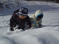 | 自然は、子ども達の心を大きく揺らします。何べんやっても楽しいのです。何べんやっても飽きないのです。 | みんなで押して、さぁ真っ白な雪原へ飛んでいけ! | 子ども達の好奇心は尽きるところを知りませんでした。 | ||||||||||