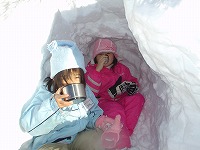 | こちらは<雪あそび隊>施設前の雪山を掘っています。何ができるの? | ミ出来上がった、かまくらで紅茶をのんでほっくり。いつもより美味しかったそうです。 | ここでも、雪の中で寝転んでしまいました。 | ||||||||||