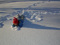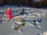 | さぁ、自分達のやってみたいことに、とことん挑戦です! | こちらは<雪遊び隊!>まっしろでふかふかの雪に心は踊ります。 | あまりにふかふかなので、寝そべってしまうのです。 | ||||||||||