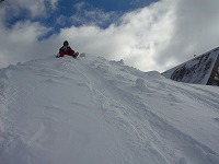 | こちらは<尻すべり隊>尻すべりをするためには、斜面を自分で登らなくてはなりません。 | 見てください!このロングコース!!みんな自分の尻すべりルートをどんどん作ります。 | たくさん、登って滑った後は、もちろん、雪のアイスで喉を潤します!! |