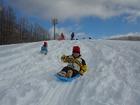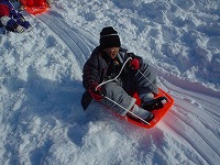 | こちらは、ソリあそび。ジャンプ台も生まれて、何度も何度もすべります。 | こちらは、ミニスキー。雪国の子どもがあそぶ、プラスチックのスキー。 | |||||||||||