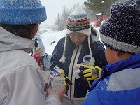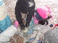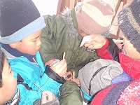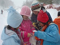 | 最後に、希望者をつのり、<アイスクリーム隊>が結成され、雪をつかって、アイスクリームを作りました。 | おいしくできるかなぁ〜 | |||||||||||