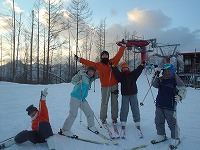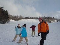 | 今日が初めてのスキーなのに、ほとんど転ばないで中斜面を降りてきました。 | スタッフとムカデ。 | イエーイ!全員、上手に上から、降りてくることができました。うまくなったぞ! | ||||||||||