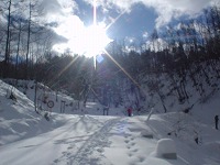 | 誰も入ることのできない原野。でも、冬には雪が積もって入れるのです。人が手をつけていない、本物の冬の自然がそこにはあります。 | しかし、もちろん道もついていませんし、除雪もされていません。そうです。原自然は、ハードののでした。さぁ、ゴールはあとすこし!がんばれ! | なんだか、あかるくなってきたぞ! | ||||||||||