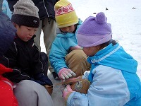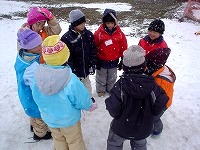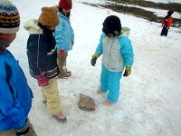 あれ!?今は、ミニスキーの時間なのに、なぜ雪だま?? |