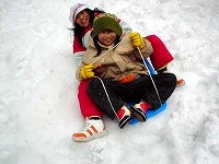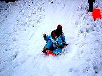| 「ソリ隊」!調子よく2人のりをしていると・・・ |