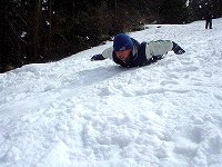 時には、どんどん大胆に!何度も、坂を登って練習してすべってみます! |