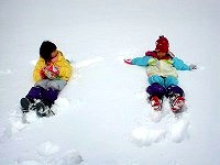| 転げまわって雪まみれ!でも、なぜだか、笑ってしまうのです。 | 雪がふったり、曇ったり、晴れたり変な天気でしたが、新雪をあそびつくした子ども達でした。 | さぁ、明日は何をする?! |