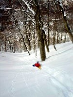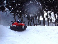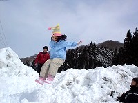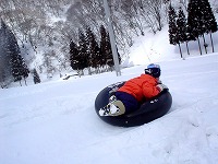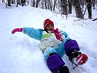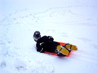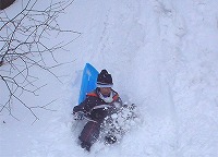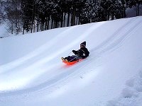 | タイヤチューブもどんどんすべります。スピード感と距離がおすすめのようです。 | 今度は、立ち乗り!うまくいけるか?! | ウルトラマン!雪が柔らかいので、なんでもへっちゃらなのです。 |