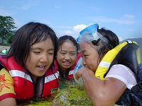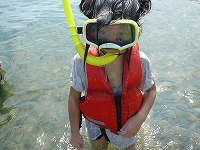 | シュノーケルをつけて、いろんな魚を見に行きました。 | 何をみて、笑っているの!? | 50センチクラスのブラックバスをみつけられるか! |