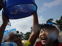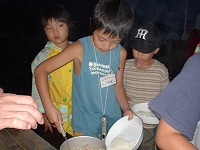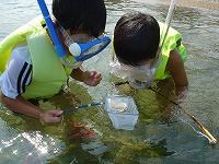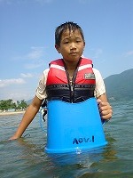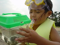 | びわこ到着!さっそく湖であそぶぞぉ〜!! | 遊んでいると、みんなの顔がどんどん笑顔になります。 | すぐに、ヨシノボリをゲット! |
