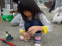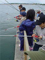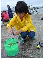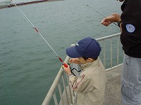 | さぁ、次はエサ入れです。ちょっと、ぐちゃぐちゃのエサも、自分でオモリカゴに入れます。 | 最初は、躊躇しても、少しずつ、自分でできるようになったり、してみようと子ども達はしていきます。 | さぁ、いよいよ釣り開始!ねらうは、アジ&イワシ!! |