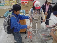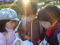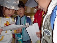 | レジは、高学年の出番?!異年齢の子ども達の中に、自然と役割関係が生まれてきます。 | 時刻表とにらめっこ!着くのは何時かなぁ? | 低学年も負けてはいません! |