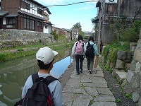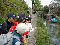 | さぁ、次の目的地到着!わからないことは、地元の人に聞いてみようという作戦のようです。お礼もわすれずにね! | 近江八幡の水郷にでてきました!まだまだ余裕! | 次の指令書は、一体どこにかくされているんだ?! |