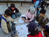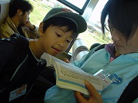 | さぁ、今回は、「ミステリーツアー」のはじまり! | さぁ、最初の指令書!暗号は、とけれるか! | みんなで、知恵をしぼります。暗号をとくだけでなく、次の目的地への行き方も自分達で調べないといけないぞ! |
