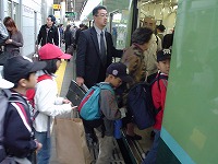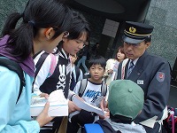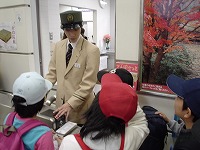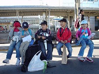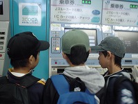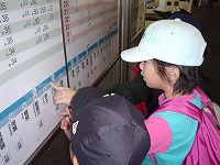 | 次の目的地にいくには・・・。 | 駅員さんに聞いてみます。子ども達が、自ら社会と関わる接点がミステリーツアーには出てきます。 | 「電車の本数が、少ないぞぉ〜!」。そうです。自分の住んでいる街と勝手が違うこともたくさんあるのです。 |