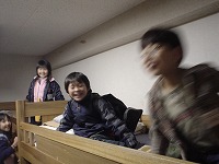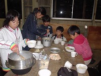 | 無事、全班到着!今日の夕飯はちゃんこなべ! | よく歩いたので、みんな良くたべました! | みんな、まくら投げをたくらんでいなかった??1日目終了。おやすみなさい。 |
