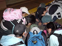 | 行き先がわかったら、班の資金で切符を買って、自分達の旅へしゅっぱつ!! | 乗る電車をまちがえるなよぉ〜! | 枚方〜京都へ。京都の暗号をといて、次なる目的地を目指すと、どんどん、自分達の街とは、違う風景になってきます。ここは、どこだ?! |
