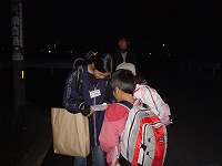 | 知恵を出し合っています。もう少しで解けそうだぞ! | 暗号解読!次は、福井駅! | 夕方になり暗くなってきました。福井から越前東郷駅を経て、1日目のゴールの自然の家へ! |