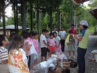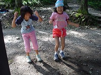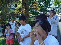 | 今日は朝から、快晴!ただ、昨日の夜の雨で川の水が増えたため、川遊びは午後までお預けになりました。 | 朝からみんなハイテンション!スタッフに自分達で考えた踊りを披露してくれました。 | |||||||||||
