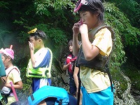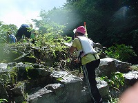 | みんな、ながされるなよぉ〜 | 川を渡ると、今度は足のつかないところ!泳いでいくしかありません。 | 岩場も登って、ウォータースライダーができるところまで、自分で進みます。 | ||||||||||