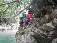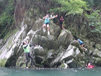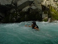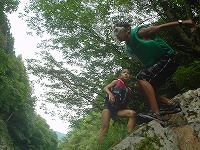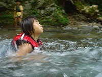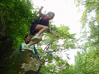 | 自分で決めて、自分でやってみる。もう、川は自分達の遊び場です。 | こちらは、"人間ウォータースライダー”今日は、目的地まで、自分の力で進みます! | スタート地点までの、難関も、自分でクリアー。 | ||||||||||