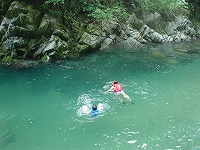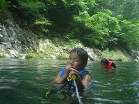 | 川を流れながら、シュノーケリング水鉄砲でスタッフを襲います!? | やりたいことをやり尽くした子ども達の顔は、すがすがしさで一杯でした。 | |||||||||||